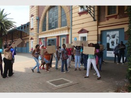 A group of unhappy men and women assembled outside Museum Africa in Newtown, holding signs expressing their ire.