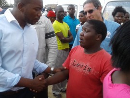 “That is the reason why we are here. We want to rescue you from the problems of poor service delivery you are facing here,” said Maimane while shaking hands of his admirers.