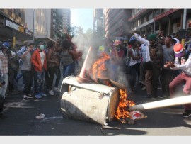 BRAAMFONTEIN - A bus was torched and a store looted after police and students violently clash in the Streets of Braamfontein.