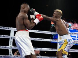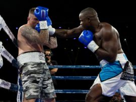 The closest it has come to a knockout was two boxers who were knocked down, but then survived the eight seconds count. It happened in the cruiserweight fight when Chris Thompson briefly sent Lebo Moshitoa to the canvas in the fifth round, while young Josh Pretorius also did so in the second round of his heavyweight fight against Kizito Rumhanya. Both Thompson and Pretorius finally scored wins by points-decision,