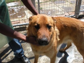 Max is a cross German shepherd, male, 14 months old, a stray and very friendly.