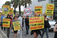 “Animals are not products, adopt, don’t shop, we don’t want your freakin store,” chanted the activists.