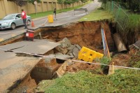 To add to motorists woes there is also a large pothole in the remaining section of road. “This is made more hazardous because motorists are trying to avoid the collapsed section and they are driving into the pothole,” McGill said.