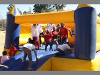 Fairways Primary School hosted the occasion, a belated tribute to former President Nelson Mandela. More than 50 children were kept busy with soccer and netball games and a jumping castle. Food and drinks were provided as well as entertainment in the form of dance shows and poetry, performed by the children themselves. The children were also given a lesson on safety and their legal rights.
