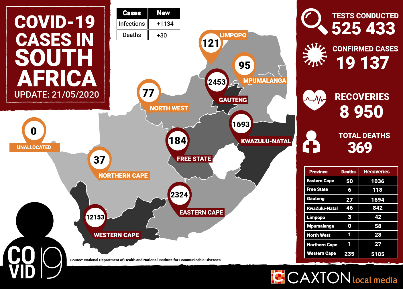 Covid-19: Confirmed cases in SA now at 19 137