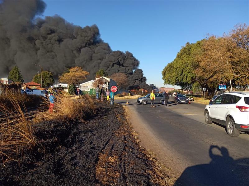 Firefighters from three stations battle Brakpan blaze