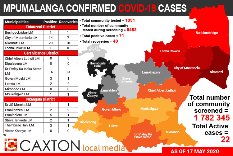 Covid-19: The number of confirmed cases in Mpumalanga as of May 17