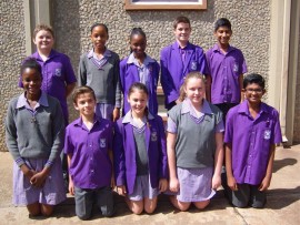GRADE 5: Front: Thembani Shabangu, Kaylee Katzke, Ranisha Kolanda Padiachee, Caitlin Rugg, and Thato Nkobo. Back: Vareshan Rajah, Tamzin Sandra, Aobakwe Masebelanga, Amber Durham and Jordan Harrop.