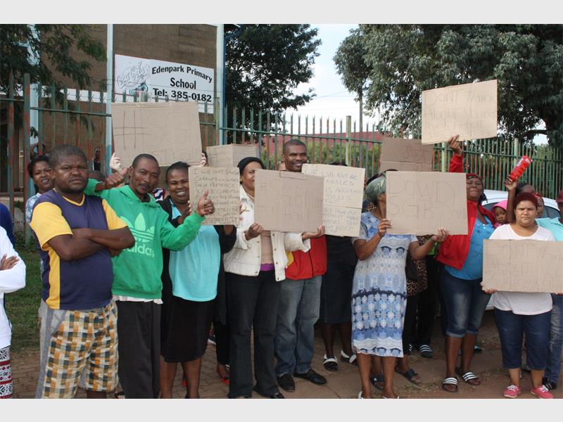 The disgruntled parents returned on Monday, March 13, brandishing placards with slogans demanding the removal of the SGB members, who they say are corrupt and some of whom don’t have children in the school.