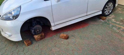Residents have come out in the morning to find all the wheels of their vehicle have been stolen overnight and the vehicle has been placed on bricks.