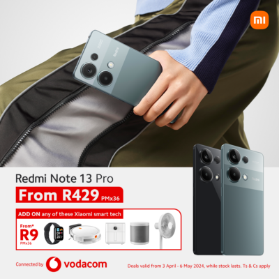 Pay just R329 for the Redmi Note 13, only R429 for the Redmi Note 13 Pro, and R699 for the Redmi Note 13 Pro+ 5G. All these deals are available until 6th May or until stock runs out. Speak to your Vodacom agent today to see the Xiaomi smart devices you can get starting from R9 per month, or visit a local Vodacom branch today for the whole story.