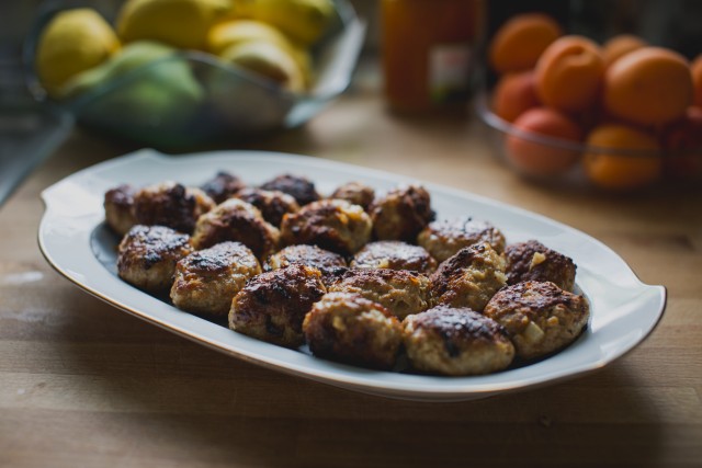 - Form the meatballs by rolling portions into small balls and pressing down slightly to flatten them.