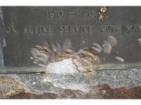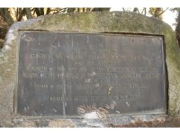 At the entrance to the grave site a large bronze plaque bears signs of damage from attempts to remove it.