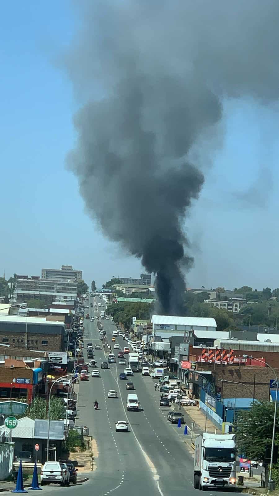 Emergency services respond to blaze on Van Riebeeck Avenue as authorities urge public to avoid the area.