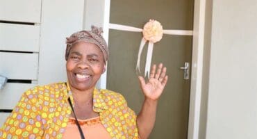Woman excited to have a roof over her head