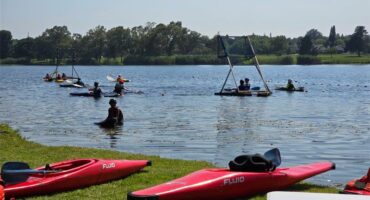 Local newsSplish-splash, scouts are playing a polo match.