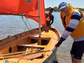Kennias Maedza assists Benoni resident Herby Hosman, who named his sailing boat Splash. Photo: Ntombikayise Letlepo.