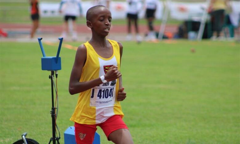 Sprinter Denè Geldenhuys finished fourth in the U13 girls’ 100m dash before winning the javelin throw after tossing 26.34. Nolwazi Magwaza clocked 1:56.30 to win the U9 girls’ 600m, while Quinn Schonken was 13th.