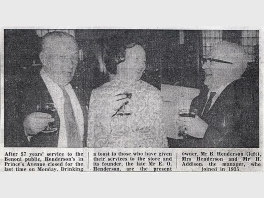 Two members of staff found it difficult to take their leave of Henderson’s – H Addison, the manager who joined in 1935, and M Verster, who joined in 1958.