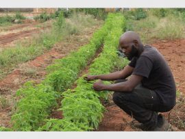 Gift Ntombela showing one of his vegetation growing on the farm.