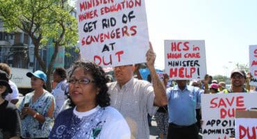 Local newsDUT staff and union members from TENUSA took to the streets of Durban this week to protest against alleged corruption,…