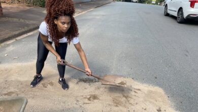 Local newsFearing for the safety of drivers on Mazisi Kunene Road, Trish Van Der Dyl took to the street outside her…