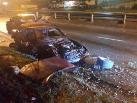 On Sunday 29 March, a motorist crashed his car on a barrier and lost control of the vehicle, causing it to hurtle up onto the oncoming lane of the road leaving a path of destruction until it came to a halt.