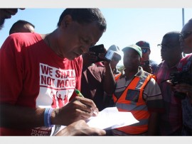 Marina Petersen who is the Acting Port Manager from Transnet met with the protestors and Des D’ Sa from SDCEA who presented her with a memorandum which included concerns and demands.