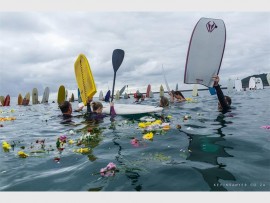 At least a hundred surfers including Andy Carrie’s family and friends paid tribute to the legendary blogger, adventurer with a paddle out off Moyo Pier on Sunday morning.