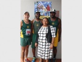Kevin Hendrikse, who is running his 10th Comrades Marathon next year, Sam Mkhonto, who will be running his 11th Comrades Marathon in 2017 and Shadrack Ncube, who will be running his fourth Comrades next year, with Musa Mbatha from Community Chest.