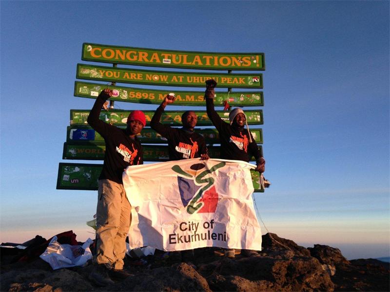 The Ekurhuleni Trek4Mandela Challenge team, Sibusiso Vilane, Joshua Awesome and Richard Mabaso, successfully conquered the highest peak in Africa in honour of former President, Nelson Mandela, on July 18.
