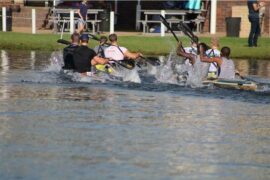 Going into the last lap, they stormed out of their boat the quickest and led the bunch into the portage. They got back into the water first, maintained the lead, and after turning on the last bouy, effortlessly sprinted to the finish to grab the win.