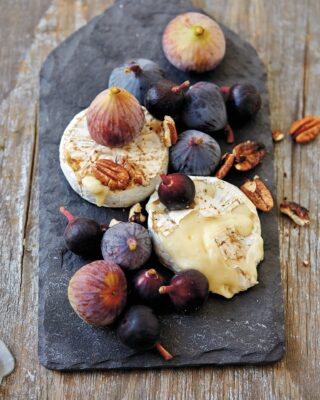 Compared with some of my other favourite cheeses, Camembert has a fairly low melting point. The outside skin has a much higher melting point than the inside though. This makes it the perfect cheese to braai as is. No need to put it in bread, in a pan or in foil – just take it out of the packaging and braai over medium to low coals for about 10 minutes until the cheese on the inside has melted, but before the outside skin melts, boils or ruptures. There are plenty of ways to serve braaied Camembert and my favourite is like this, with nuts and figs as a dessert. This way the coals of your fire are nice and relaxed post-dinner by the time you want to braai the cheese.