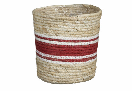 Woven baskets using recycled plastic and grass evoke a rustic, farmhouse look. These baskets from Rachal and Malika’s are made by a women’s cooperative in Senegal using local Njodax grass. The women use their own designs so that every basket is unique.