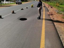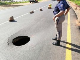 A sinkhole formed along Main Reef Road over the weekend.