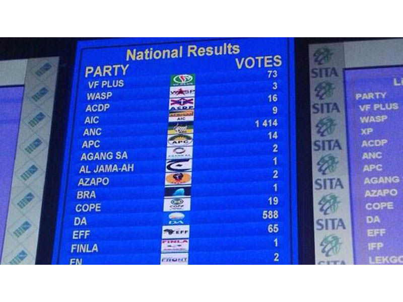 Elections 2014Recently formed Economic Freedom Fighters (EFF) has secured 25 seats in parliament and becomes official opposition in two provinces.
