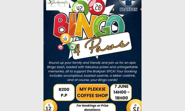 Book your spot now for Bingo 4 Paws in aid of the Brakpan SPCA.