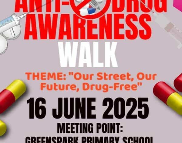 The event will begin with an anti-drug awareness walk at 09:00 from Greenspark Primary School, proceeding to Greenspark Stadium. There, participants will be welcomed with a range of fun games and youth-focused activities designed to promote positivity and healthy choices.
