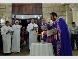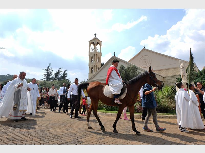 OURLady of Lebanon in Liefde en Vrede celebrated Holy Week, beginning with a Palm Sunday morning mass, which ended with a procession led by a young Jesus on a mare around the church grounds. Parish priest Father Jean Yammine celebrated mass assisted by Father Jean Younes, who was visiting from Lebanon.
