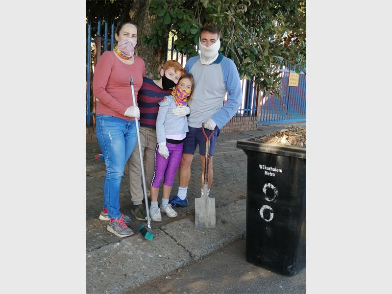 Kriek family cleans outside area of Laerskool President Steyn