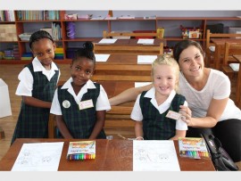 WELCOME: Grade One teacher Mrs Rochelle Johnson with Lolwethu Mavimbela, Chloe van der Merwe and Paige Boucher.