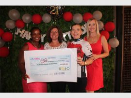 A R10 000 cheque was handed over to Sharon Gordon, owner of Dignity Dreams, at the celebration.