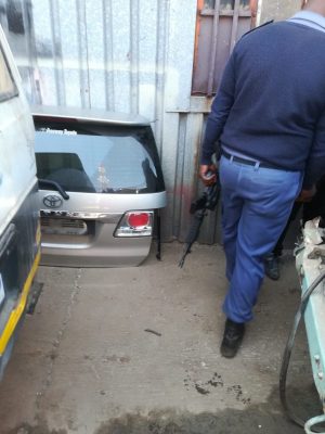 A silver Toyota Fortuner stolen in Basonia was found at Mishoeshoe Factory with all parts stripped. Some of the parts were found on the scene.