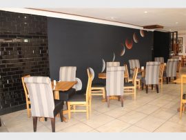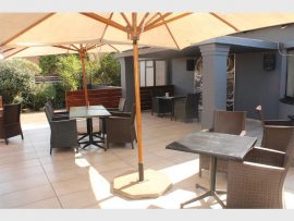 The outside courtyard is shaded with cream umbrellas and towards the bottom of the lower area, trees, plants and shrubs make for a tranquil setting. Our winters in SA still make it viable for eating al fresco.
