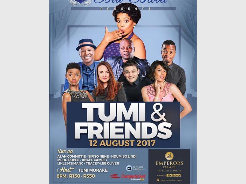 Tumi and Friends will have audiences in stitches at Emperors Palace, Johannesburg on August 12.
