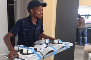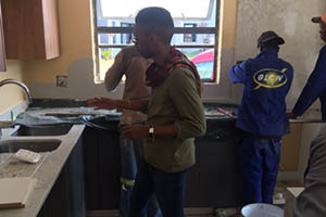 Both Mpho and Lesego from Team VISI have experience in designing kitchens. Their mentor, Annemarie, offered advice on how to get their accessories right in their sleek, modern kitchen.