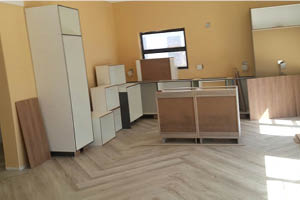 Budget is a huge concern at this stage. Besides all the sponsored elements, each Duo has a cash budget of R300,000 for the entire house. From this amount, Team Habitat has R114,000 remaining, Team VISI is left with R104,000 and Team House and Leisure have just R85,000 remaining. This is a huge problem when there are still three spaces left to decorate and the kitchen is typically the most expensive space in the home. Thankfully Grundig is sponsoring all the appliances, Caesarstone the counter-tops and Belgotex is supplying the vinyl floors.