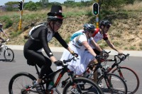 Other memorable costumes were cyclists wearing angel wings, tutus, tinsel on their helmets and one cyclist tied a balloon to his helmet and joked that it was useful to hold up his head during the tough race.