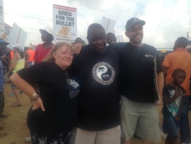 A dusty road served as barrier for protesters, as representatives from the park were also out in full force.