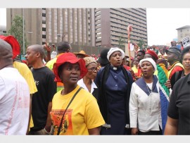 The workers converged at Mary Fitzgerald Square, Newtwn from 9am and at 11am the workers marched to Beyers Naude Square, where various government representatives accepted their memorandum of demands. They proceeded to the Chamber of Mines to submit a memorandum of demands from there they marched to the South African Reserve Bank.